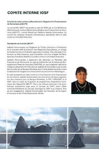 risme (LBC/FT) ; comité Présidé par Madame Isabelle Schoonwater. Ce